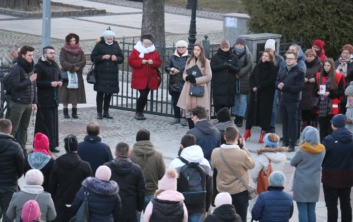 Modlitwę różańcową poprowadził ks. Adrian Jakubiak, duszpasterz akademicki i diecezjalny asystent KSM. - Bardzo się cieszę, że młodzi chcą pomagać nie tylko materialnie. Potrzebna jest też pomoc modlitewna. Cieszy, że młodzi chcą chwytać za różaniec i modlić się o wolność. Kard. Stefan Wyszyński powiedział, że jeśli gdziekolwiek jest nienawiść, czy podniesienie ręki na bezbronnego, tam zawsze człowiek przegrywa. My chcemy wygrywać, ale z ręką podniesioną, w której jest różaniec - mówi ks. Jakubiak.